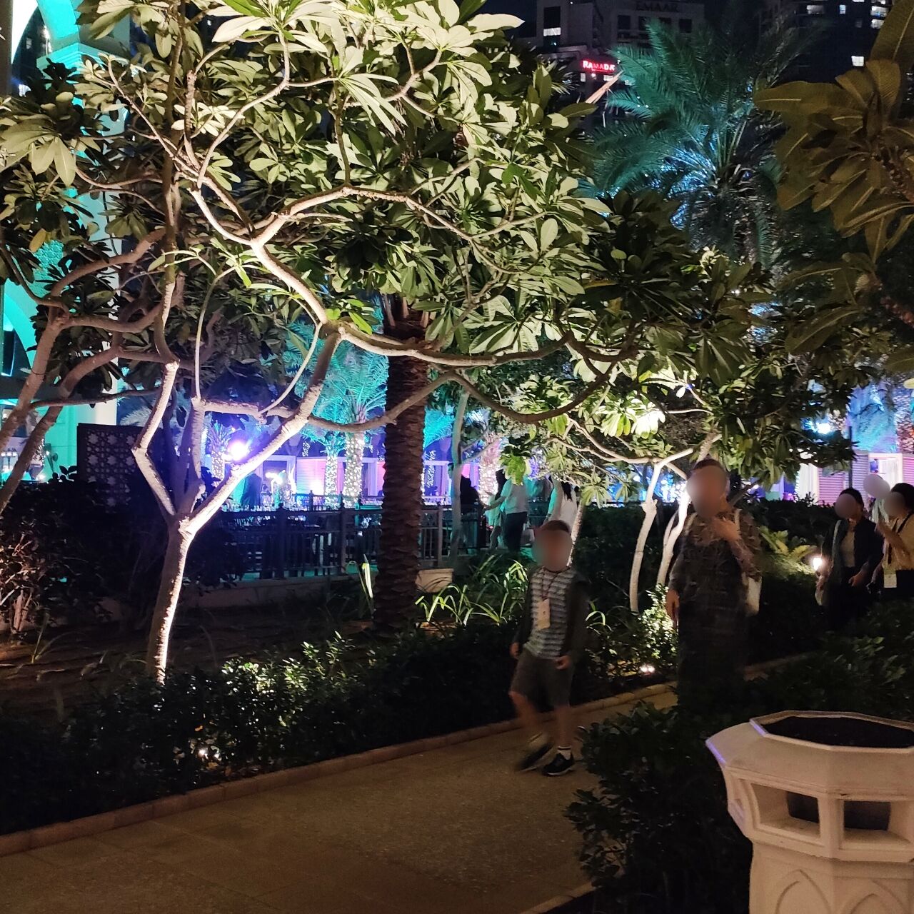 23:30頃部屋を出て、朝食会場Ewaanの横、タイ料理Thiptaraへ通じる芝生のところに行ってみました。