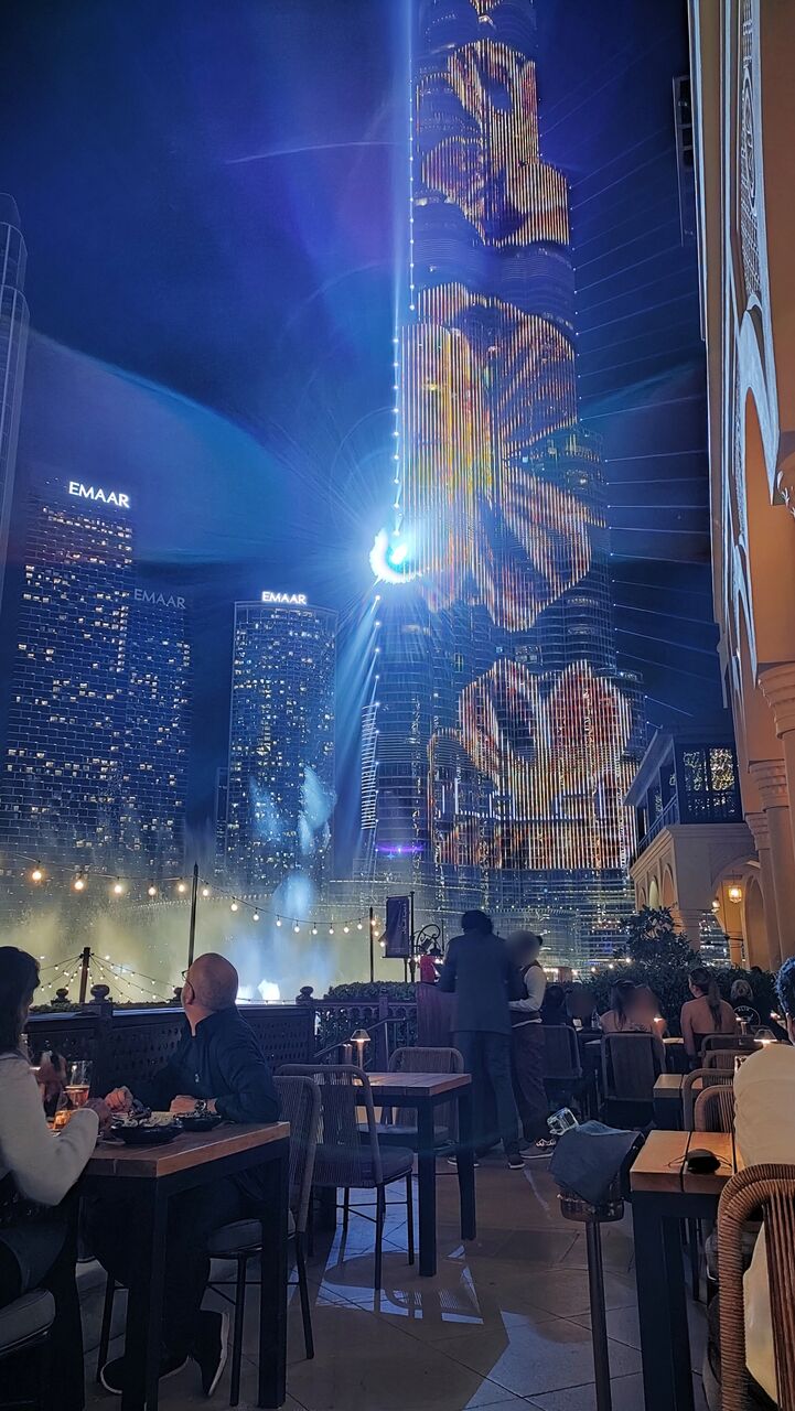 パージュカリファの真正面で、LEDのショーもとても綺麗に見えます。