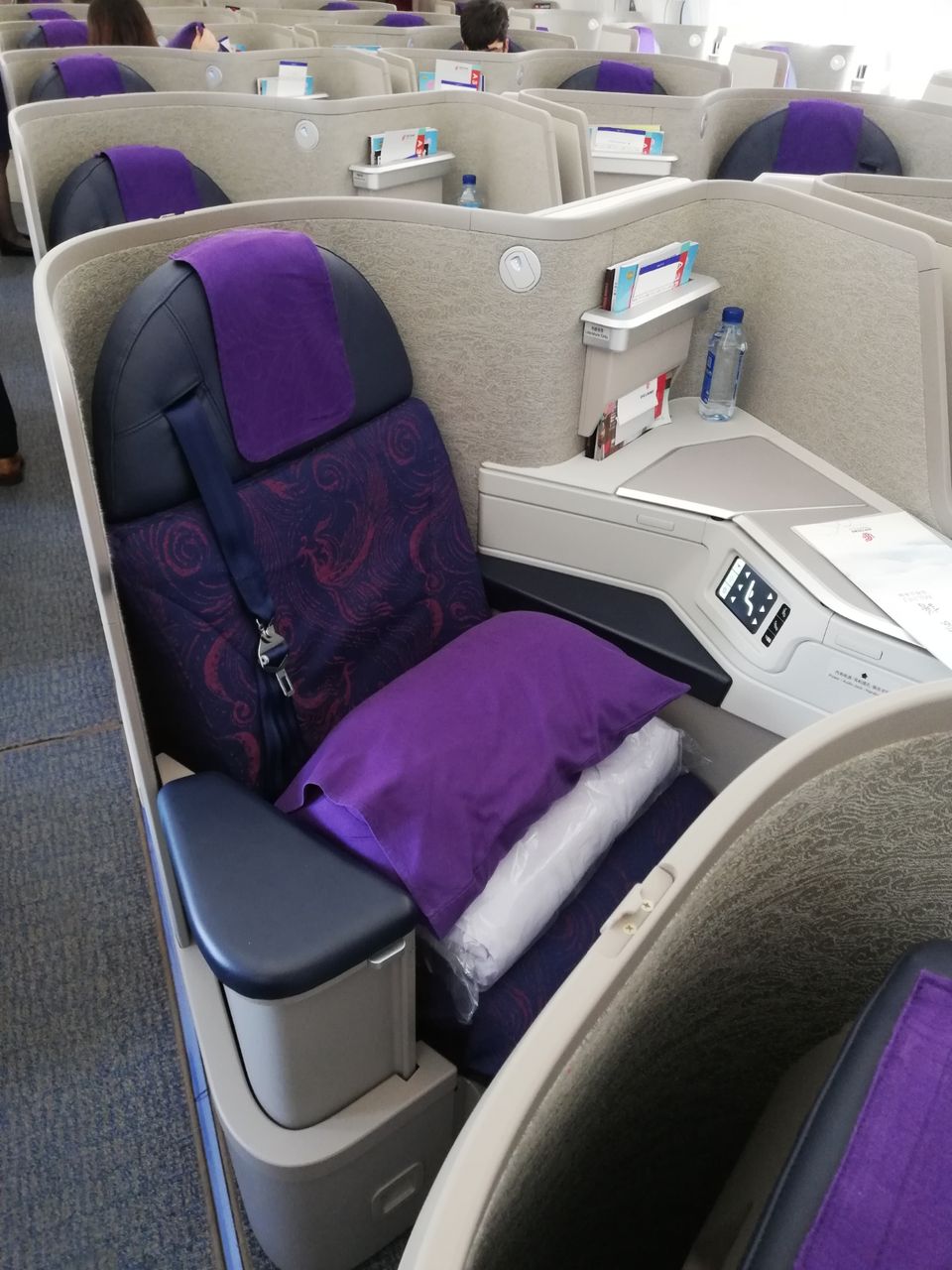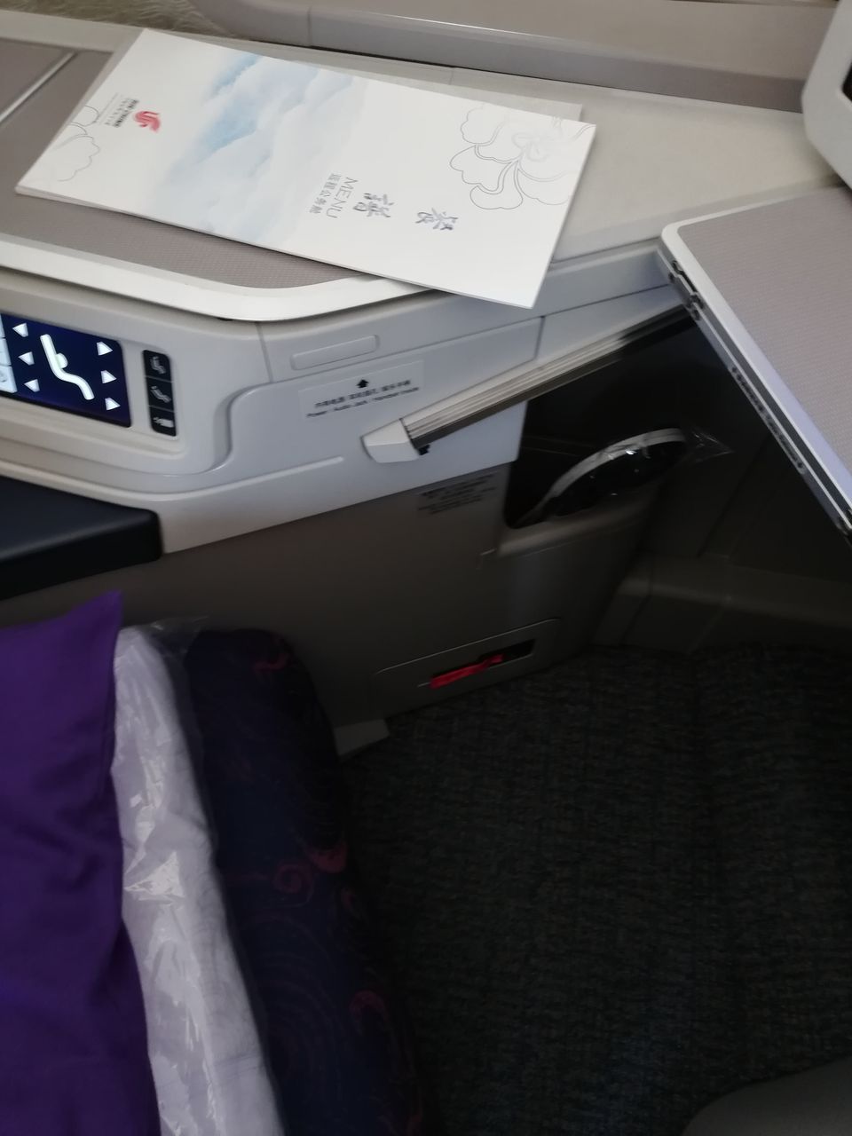 行きはフルフラットでしたが帰りは普通(?)のシートです。