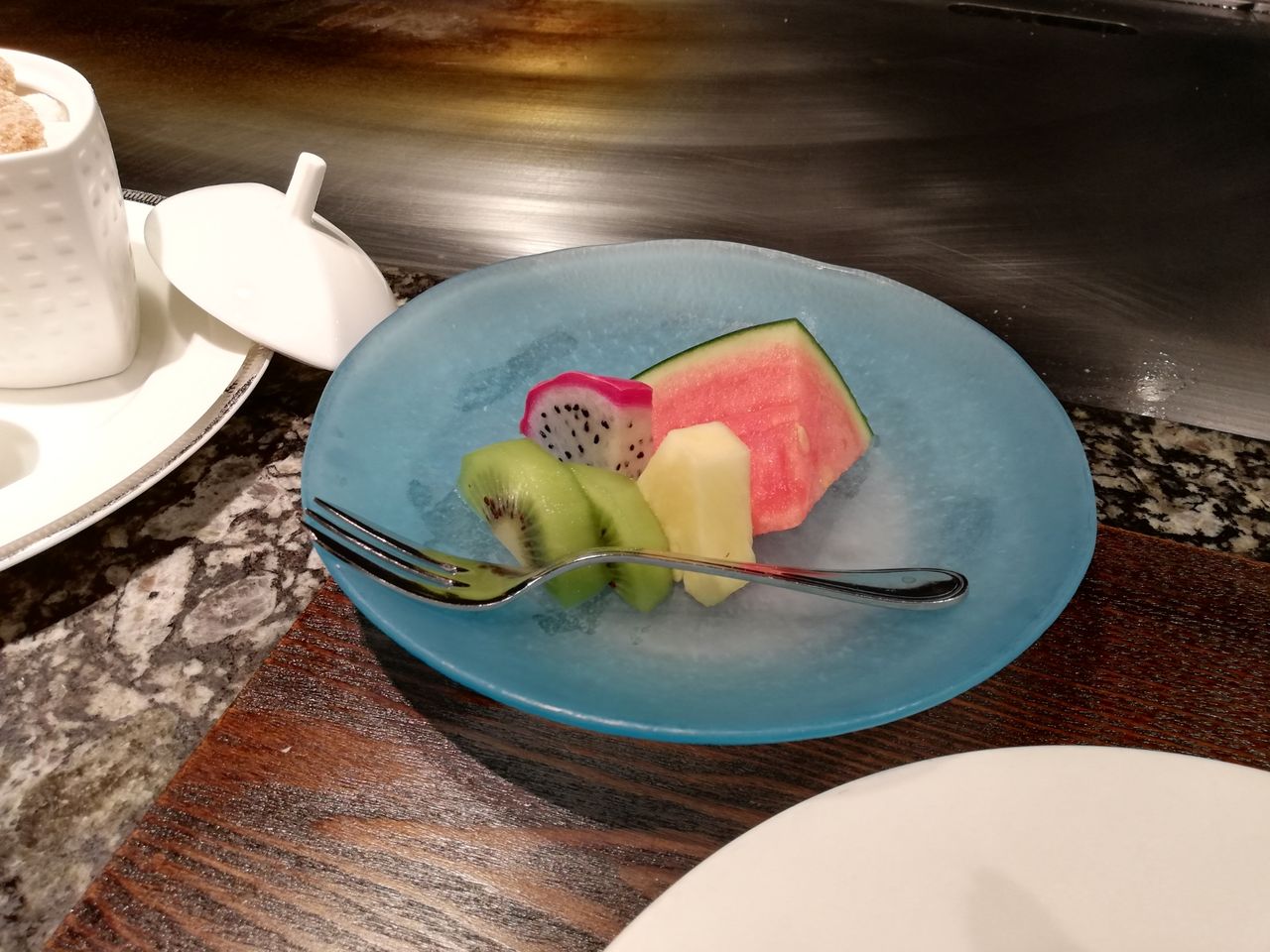 デザートのフルーツは、ドラゴンフルーツ、キウイ、スイカでした。